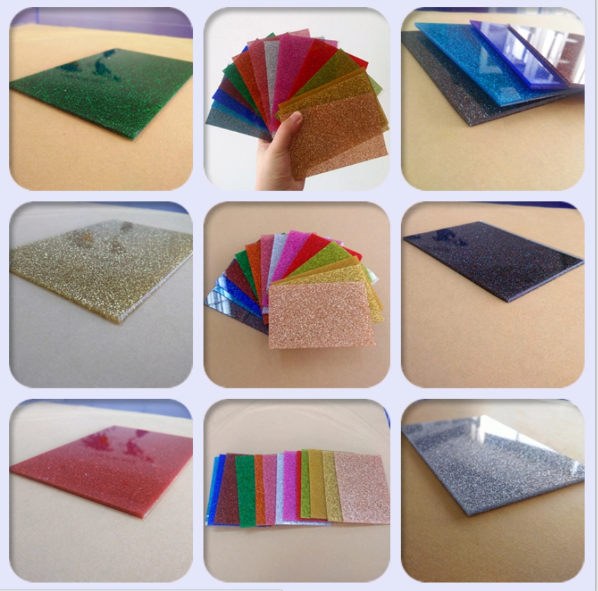 Акриловый лист с блестками, также известный как вспышка, также называют золотым луком. Из-за большого размера его еще называют блестками золотого лука. Он изготовлен из очень блестящих алюминиевых пленок из ПЭТ, ПВХ, ОПП различной толщины путем гальваники, нанесения покрытия и точной резки. Размер частиц порошка золотого лука может составлять от 0,004 мм до 3,0 мм. Защита окружающей среды должна быть ПЭТ-материалом. Его форма имеет четыре угла: шестиугольник, прямоугольник, призму и так далее. Золотой лук-розовый разделен на лазерное серебро, лазерное золото, лазерный цвет (включая красный, синий, зеленый, фиолетовый, персиковый, черный), серебро, золото, цвет (красный, синий, зеленый, фиолетовый, персиковый, черный) волшебную цветовую серию. Каждая цветовая система имеет на поверхности защитный слой яркого цвета. Он обладает определенной устойчивостью и термостойкостью к мягким агрессивным химическим веществам, таким как климат и температура.